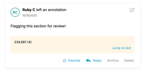 Highlighting a portion of bill text and leaving an annotation on the bill