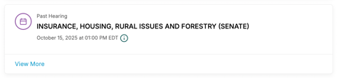 - This history includes when a committee event is announced including the specific bill, including the date and time of the meeting, location, description if available, and link back to the Legislature's page for this event.